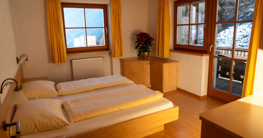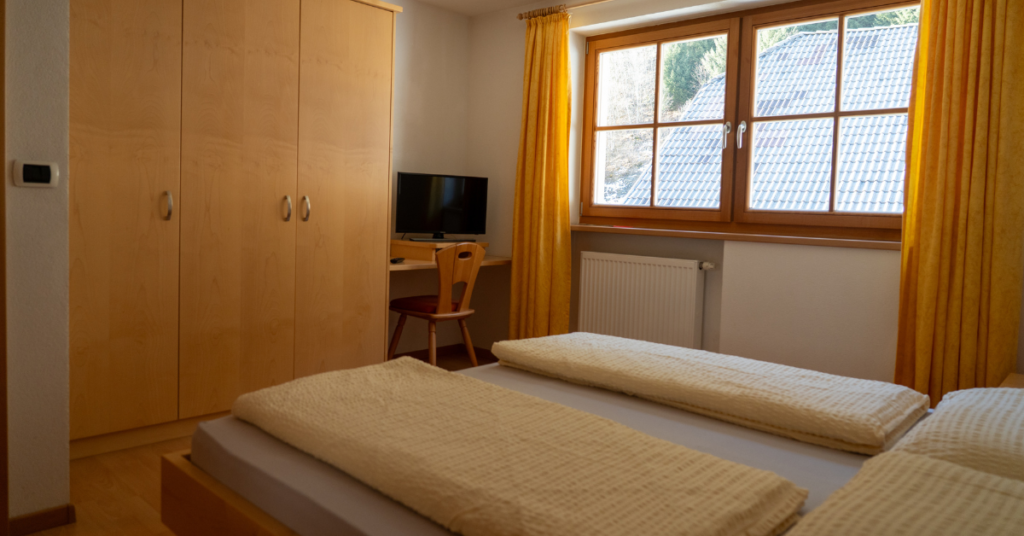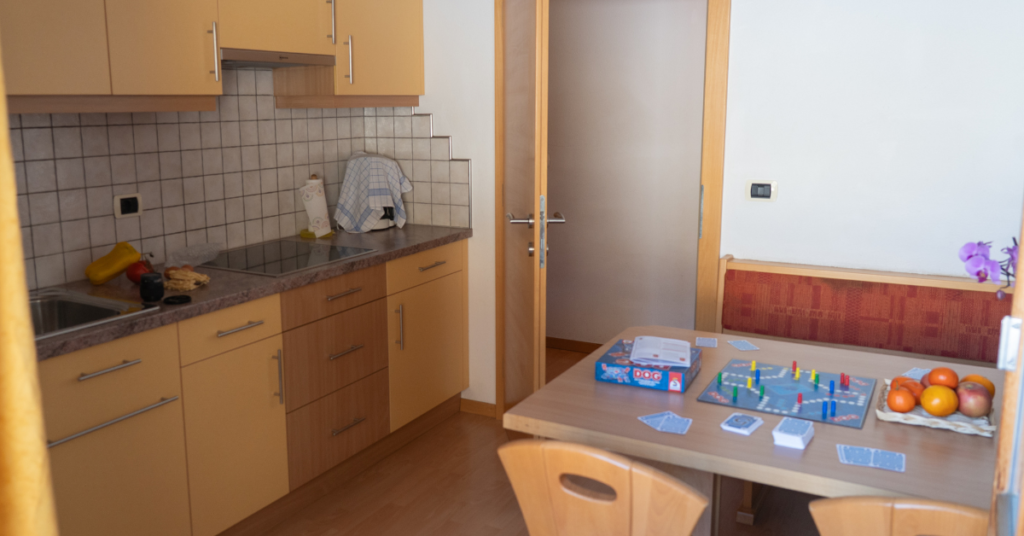 Upon entering Apartment D, you step through a short hallway into the cozy, fully equipped kitchen. From here, you have direct access to the balcony – the perfect spot to enjoy your morning coffee while taking in the stunning mountain scenery of the Antholz Valley.
